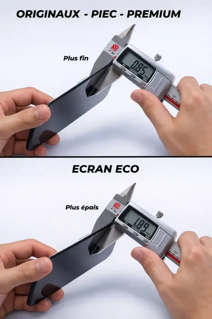 Les écrans ECO, basés sur une technologie LCD, sont un peu plus épais que les écrans OLED d’origine. Cette différence est généralement imperceptible à l’usage, mais nous préférons vous en informer en toute transparence.